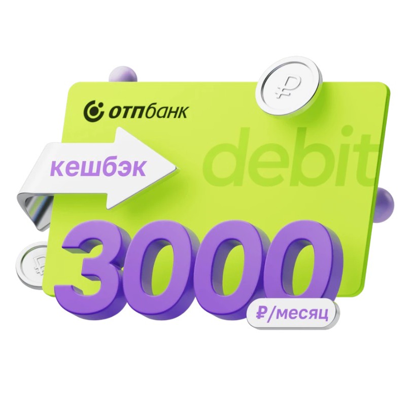 Оформляете по ссылке дебетовую ОТП Карту. Каждый месяц сами выбираете 4 категории, в которых хотите получать повышенный кешбэк. По ним начисляют до 10% бонусными рублями. Максимум в месяц - 3000₽.