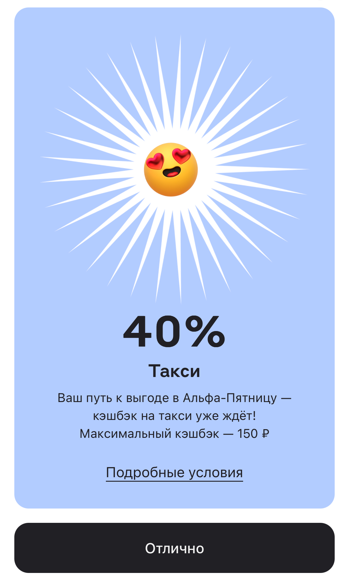 Платим картой Альфа‑Банка (только не Детской и не Апельсиновой, они не участвуют).