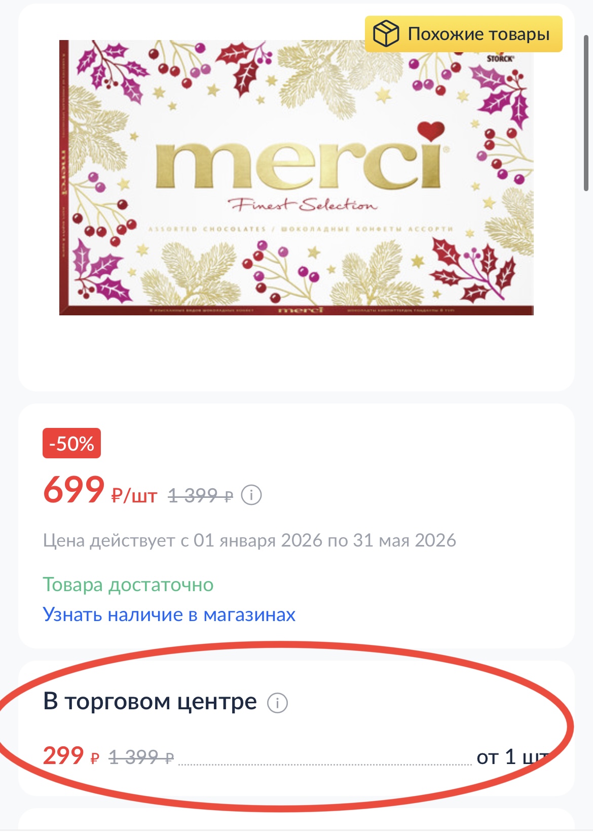 Попалась классная цена на любимые конфеты! Но можно купить только в самом магазине. Смотрел в магазинах Москвы.