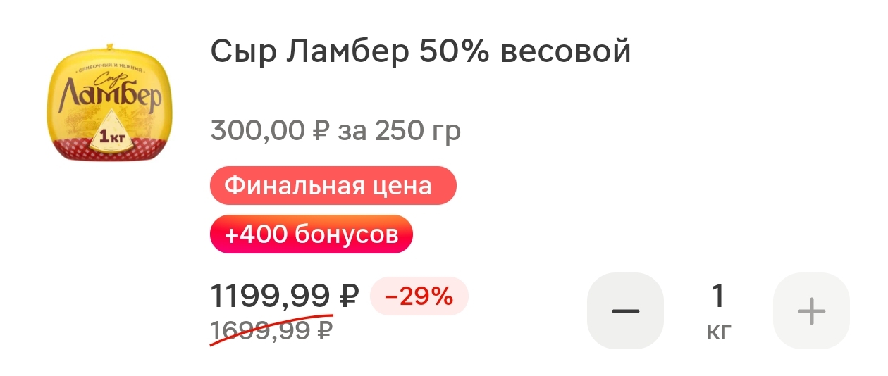 Жаль, что сыр со знаком "Финальная цена", никакой промокод дополнительно на скидку не применить.