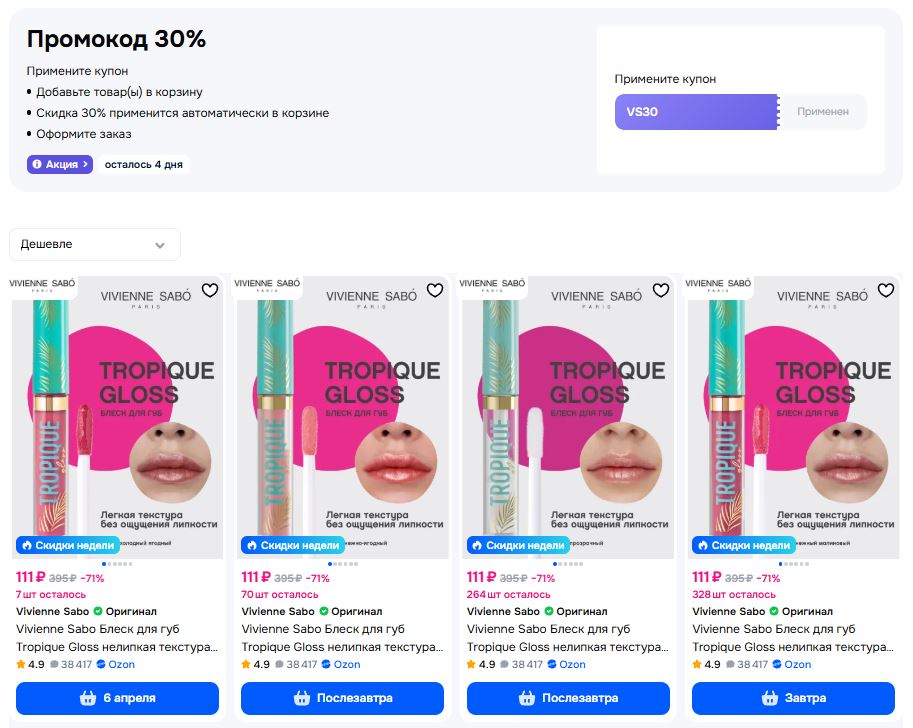 По ссылке надо нажать на кнопку "Применить" около промокода, обновить страницу и цены будут показаны уже с учётом скидки 30%.