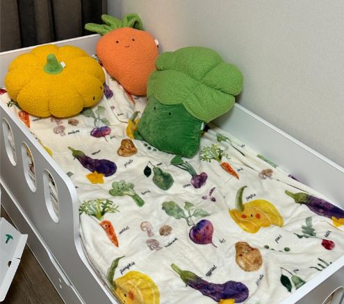 Флисовые мягкие пледы 100 на 140 см от 276₽. Есть разные рисунки, много отзывов с фото. В тему к подушкам сверху можно заказать плед с овощами.