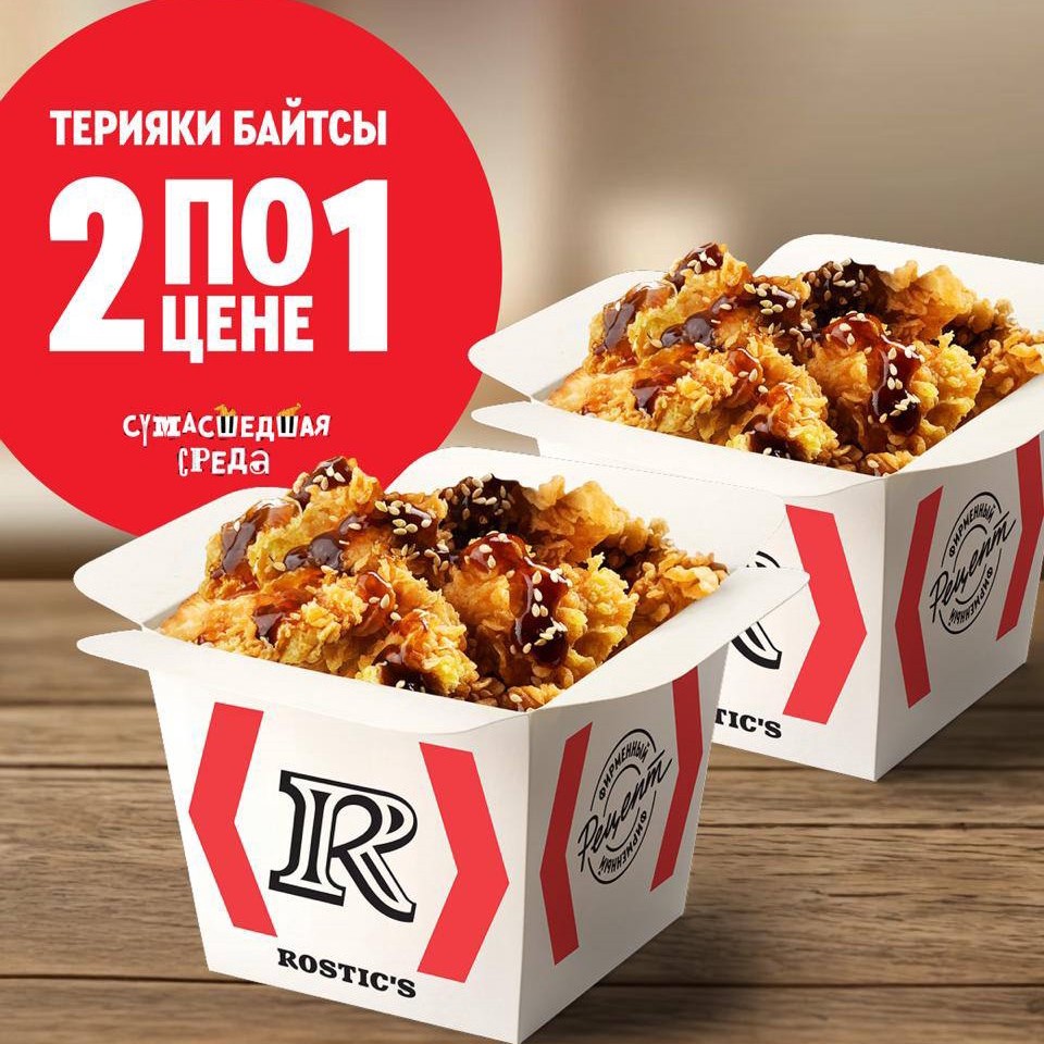 До конца дня работает классная акция: заказываешь одну порцию Байтс Терияки в приложении самовывозом, а вторую получаешь в подарок. В корзину надо положить 2 порции и стоимость пересчитается