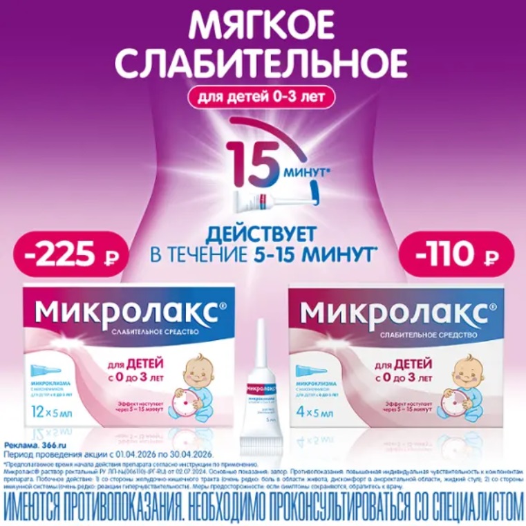 Скидка до 220 рублей на «Микролакс» не комбинируется с другими скидками (включая социальную карту). Вы автоматически получите максимальный размер скидки, который действует на этот товар.