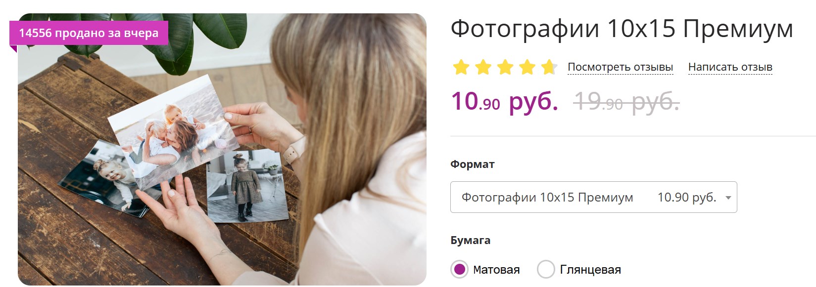 Печатайте лучшие снимки по суперцене: 10,9 ₽ за фото 10×15 Премиум. Акция на сайте и в мобильном приложении. Загружайте неограниченное количество фото, кладите в корзину - цена пересчитается автоматически. Доставка оплачивается отдельно.