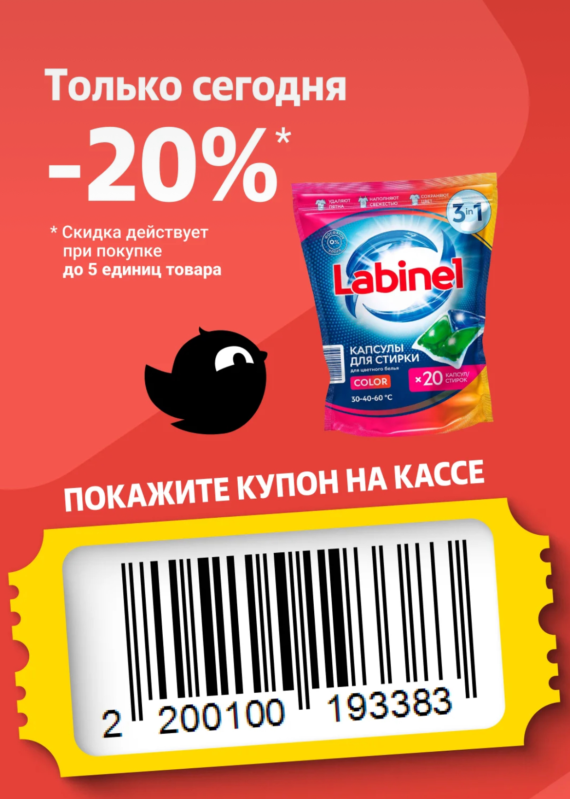 Нашла свежий купон, действует до конца дня! Можно купить до 5 штук товара, но скидка сработает только на капсулы для цветного белья.