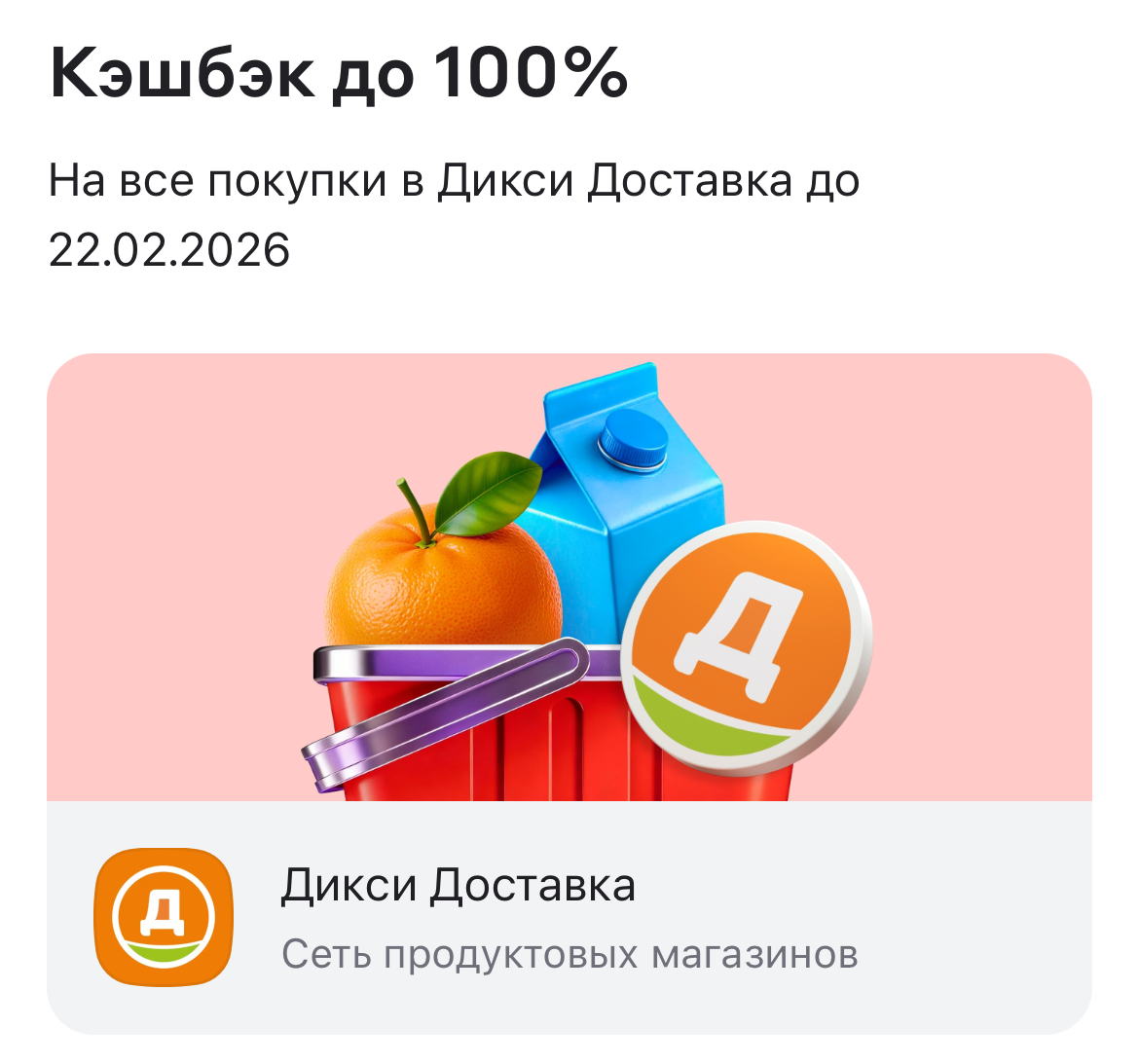 • До 100% на Дикси. Максимальный кэш - 2000₽.