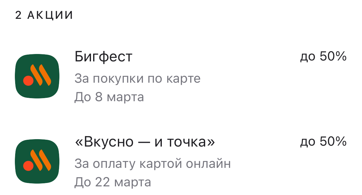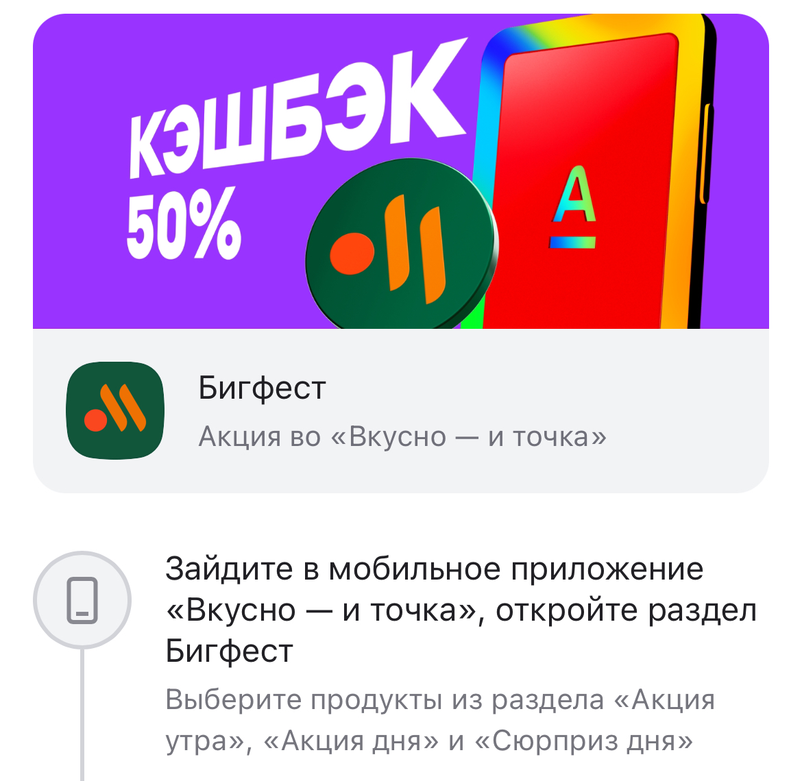 • И ещё есть акция на "Вкусно - и точка". Тут кэшбэк до 50%: