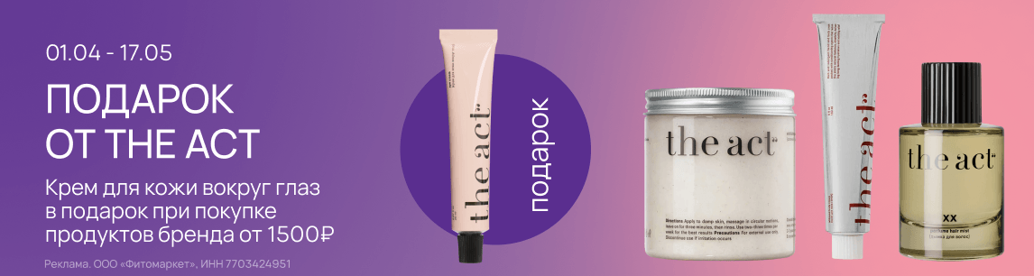 При заказе товаров бренда The Act от 1500₽ крем для век против темных кругов и отечности со светоотражающими частицами в подарок. Один подарок на заказ, количество заказов не ограничено.