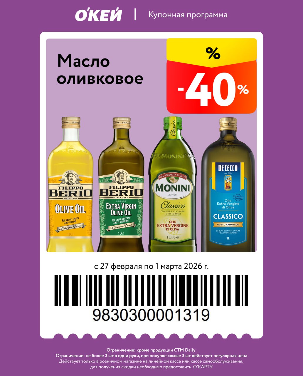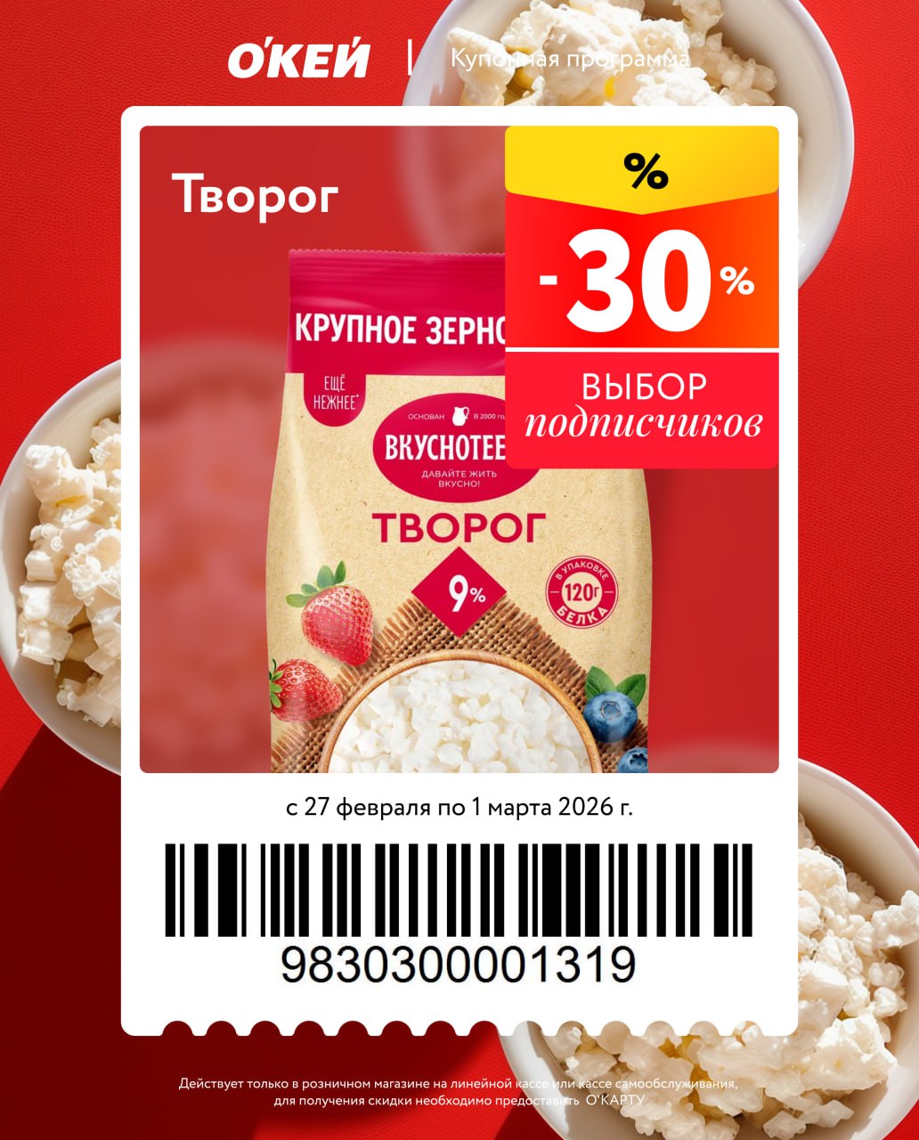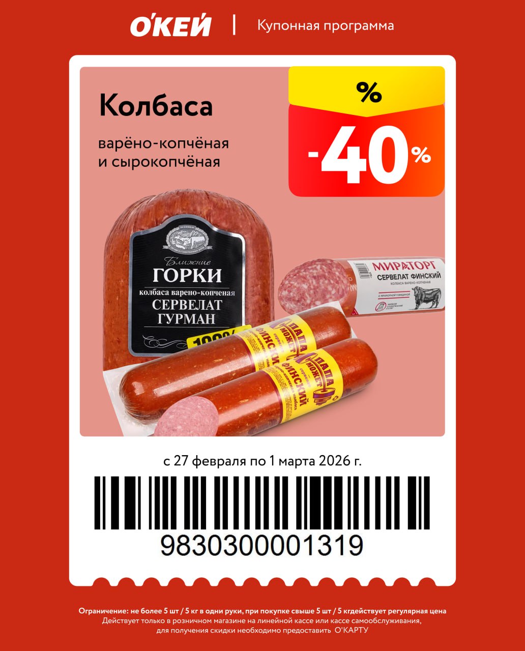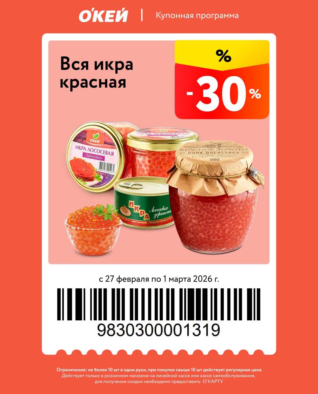Новые купоны на колбасу, масло оливковое, красную икру, выпечку, творог, овощные консервы, соки и цитрусовые. Есть ограничения по количеству, скидка от полной цены, нужна карта магазина.
