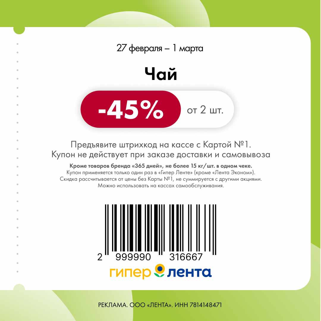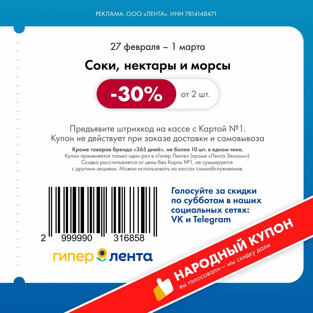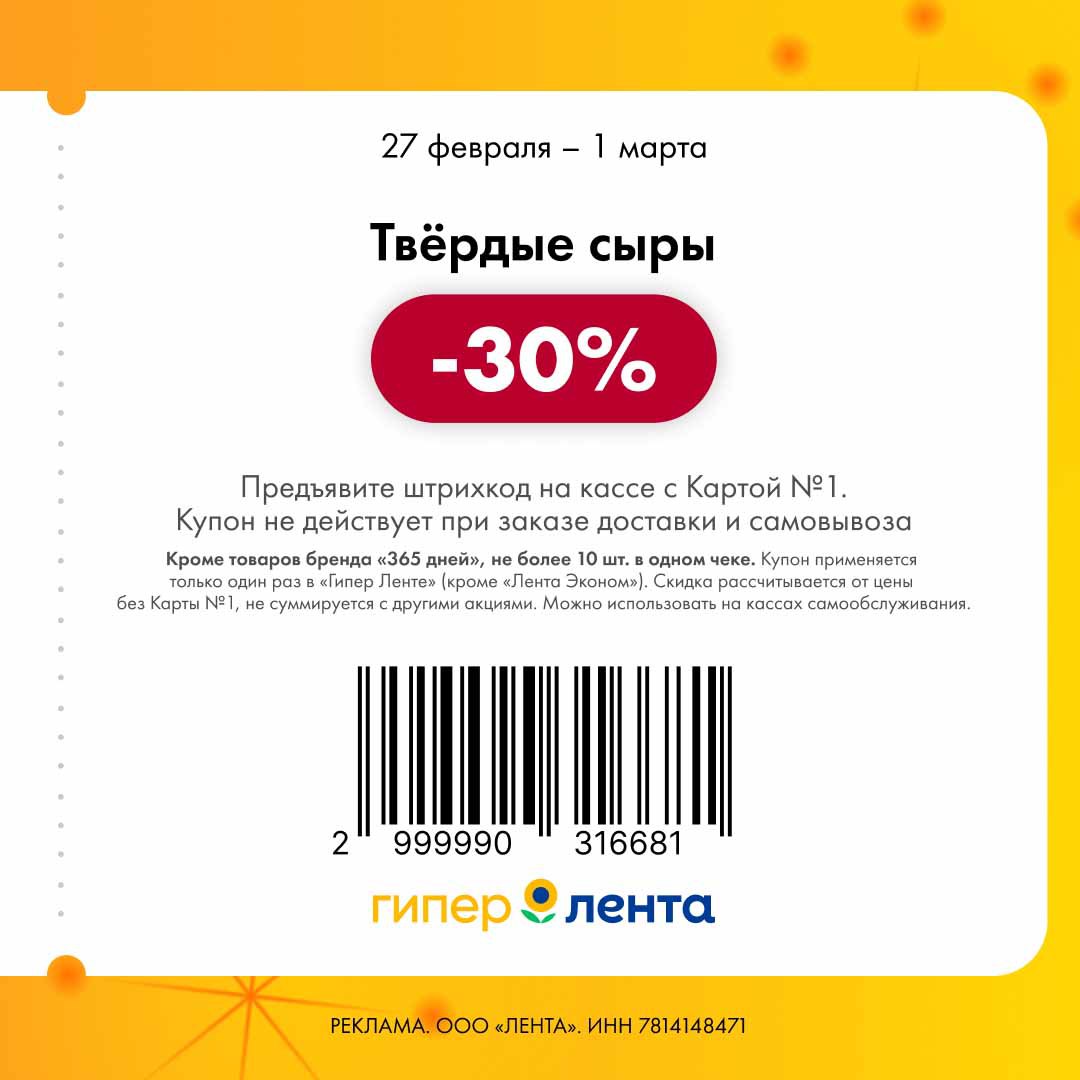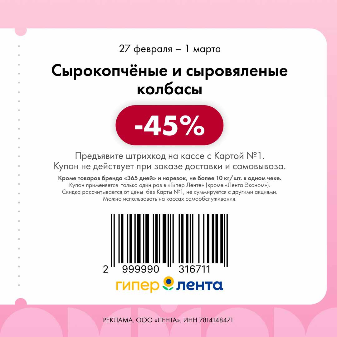 Новые купоны, скидка от полной цены, можно на кассах самообслуживания