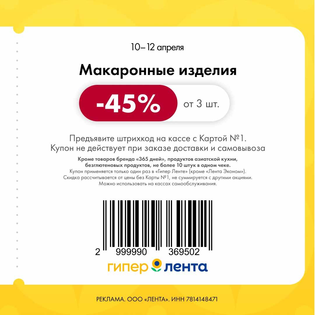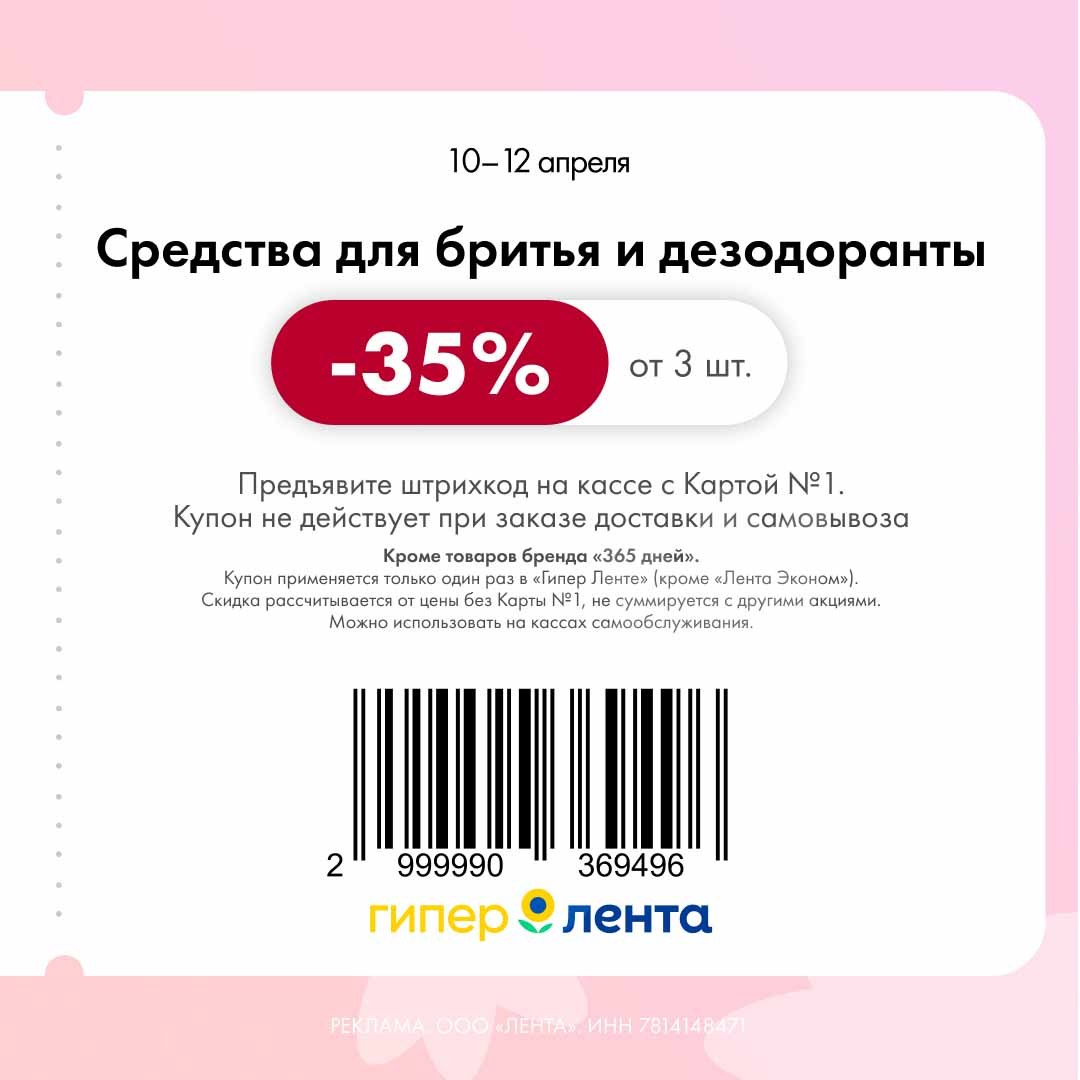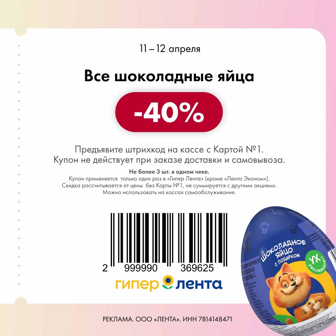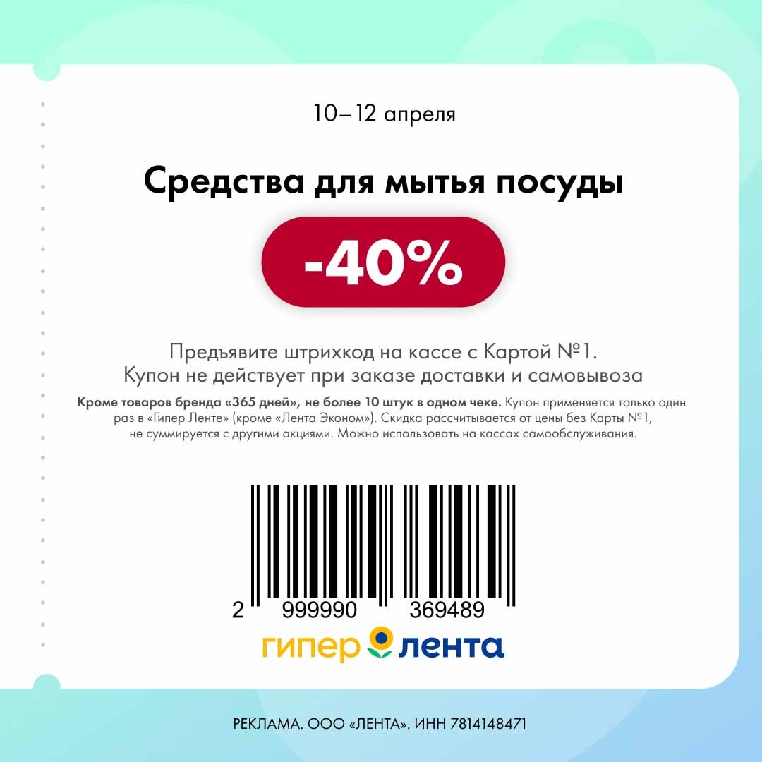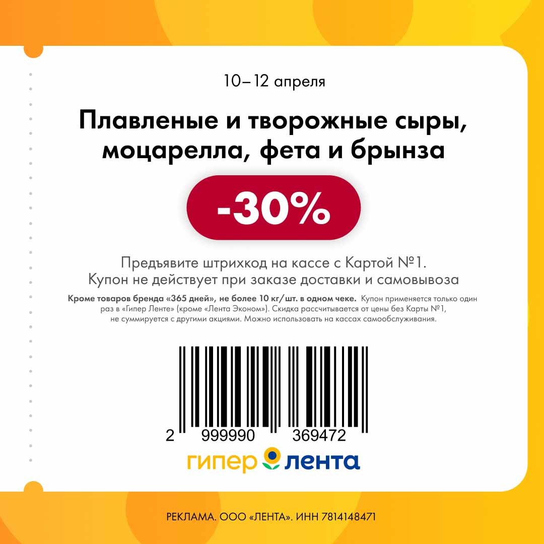 В группе Ленты нашла новые купоны. Скидка проходит от полной цены.