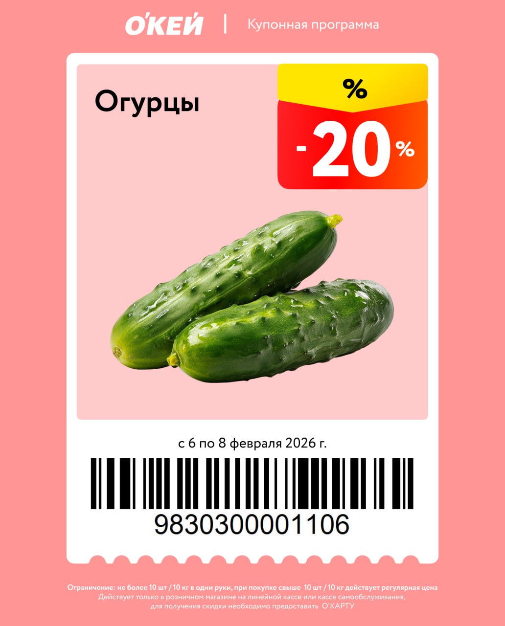 Выкатили новенькие купоны к выходным, на огурцы точно пригодятся, а-то они уже дороже бананов😅😅😅Чтобы получить скидку, необходимо предъявить активную O'КАРТУ, скидки не суммируются.