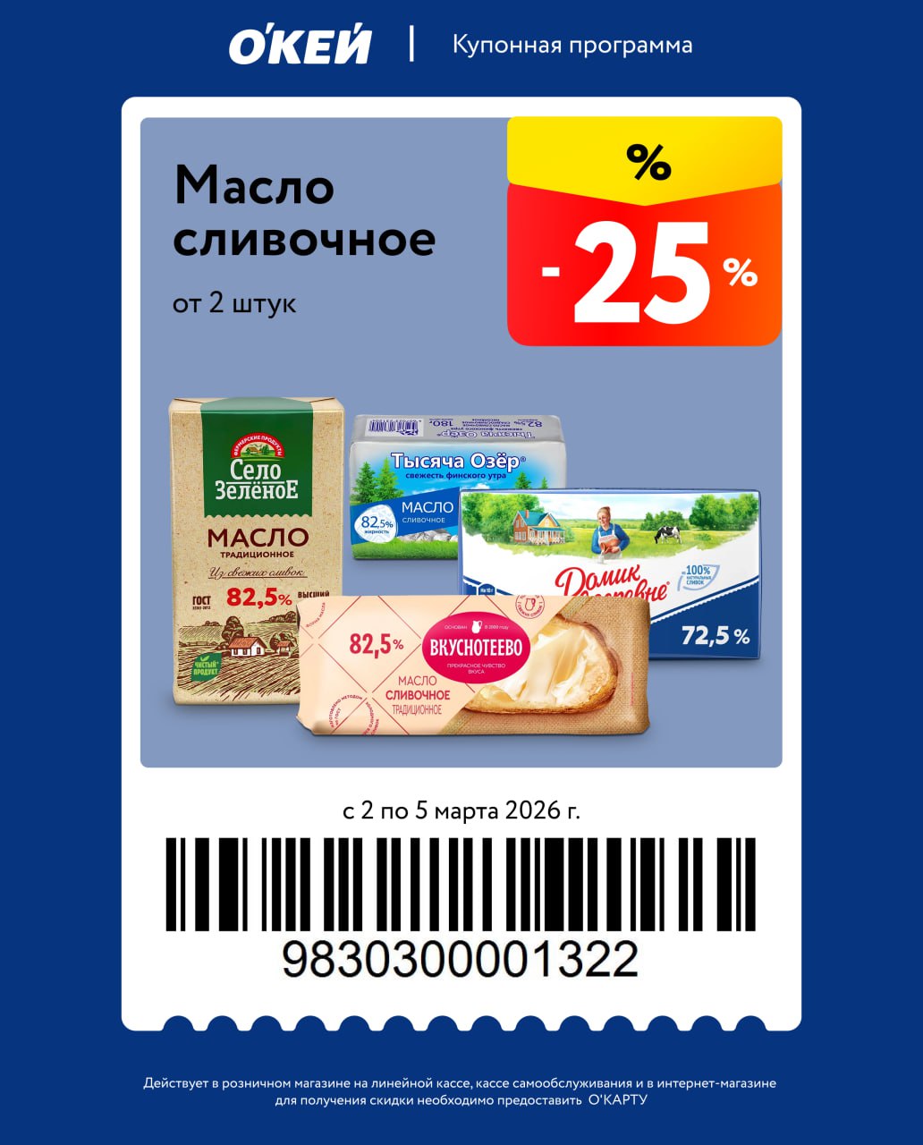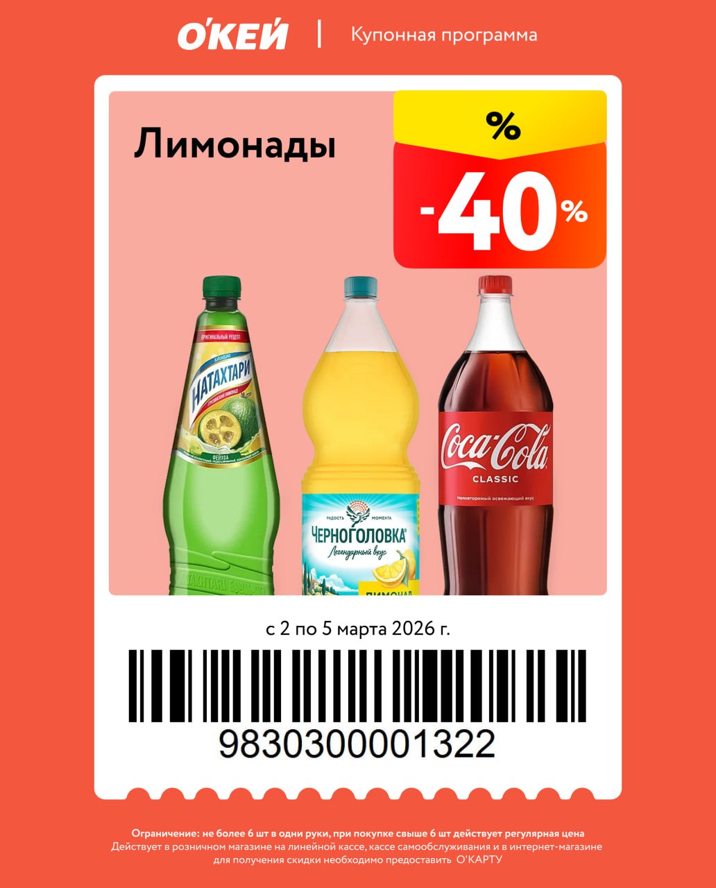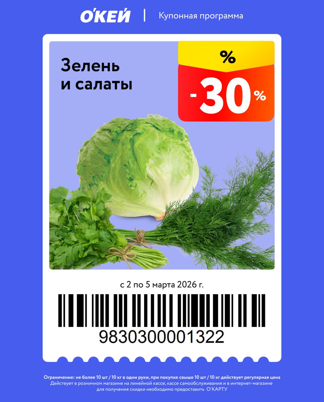 Сегодня всего 4 купона, из еды масло сливочное, лимонады и зелень салата. Работают со 2-го по 5 марта. Не пройдут на товары по акциям, нужна карта магазина.