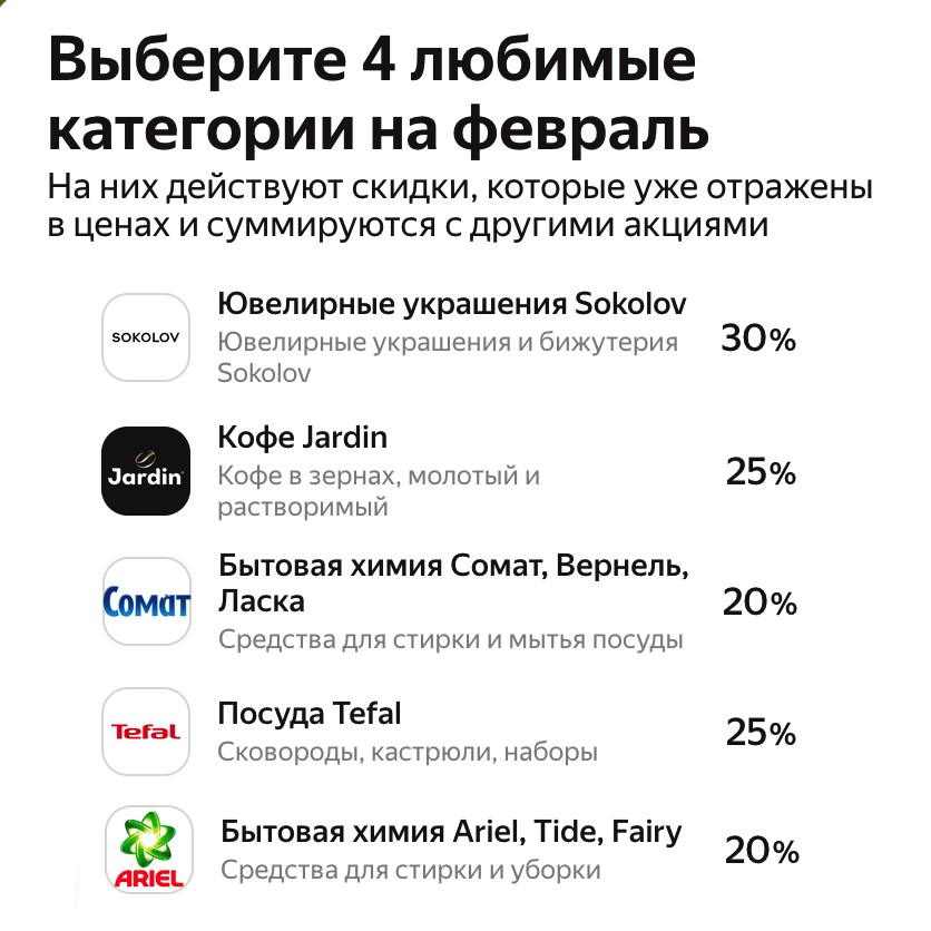 Всегда жду начало месяца, потому что на Яндекс Маркете обновляются любимые категории месяца с классными скидками. В этот раз дают 25% скидку на посуду Tefal (качество очень хорошее, люблю этот бренд), 25% на кофе Jardin (с нынешними ценами на кофе получается очень выгодно)! Ну и в категории попали мои любимые спасатели - средства Ariel, Tide, Fairy, Сомат, Вернель, Ласка. Беру сразу на месяцы вперёд, экономно и практично.