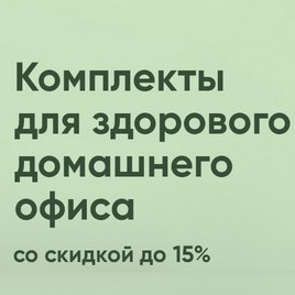 Дополнительная скидка предоставляется на комплекты, включающие стол и кресло, из следующих специальных подборок: «База» — до 10%, «Комфорт» — до 12%, «Эргономика» — до 15%. Указанная скидка не подлежит суммированию с купонами, иными акционными предложениями и другими комплектами.