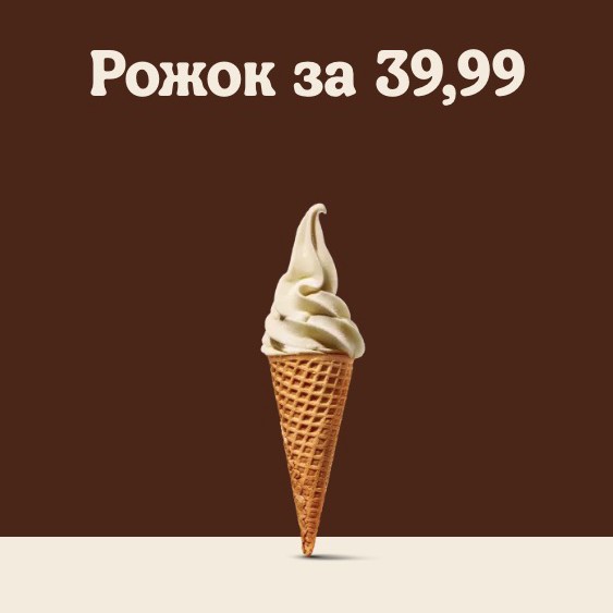 Ищи в приложении общий купон и забирай хрустящий рожок на десерт по низкой цене. Распространяется на заказ с собой.