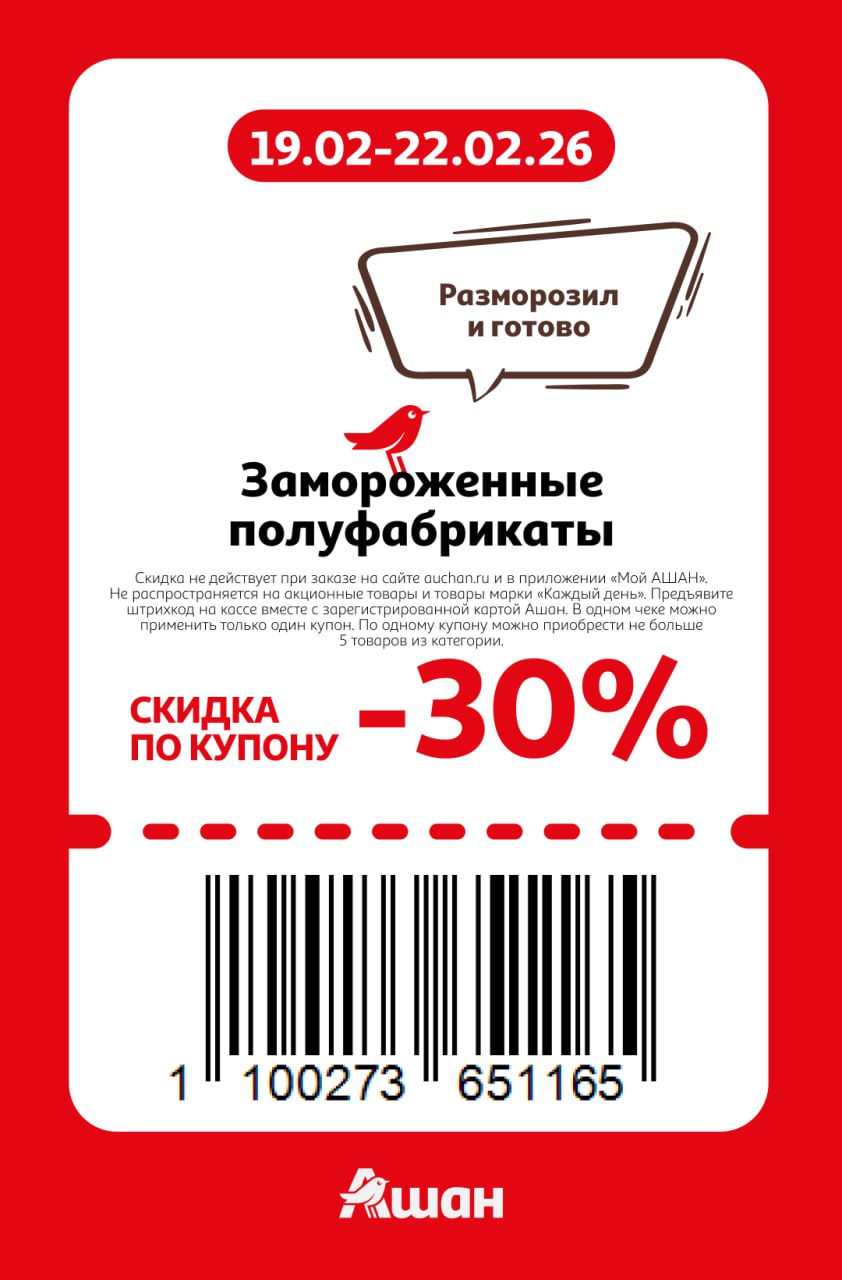 На кассе показали карту Ашан и купон. В одном чеке сработает только один купон. А ещё не суммируются с акциями