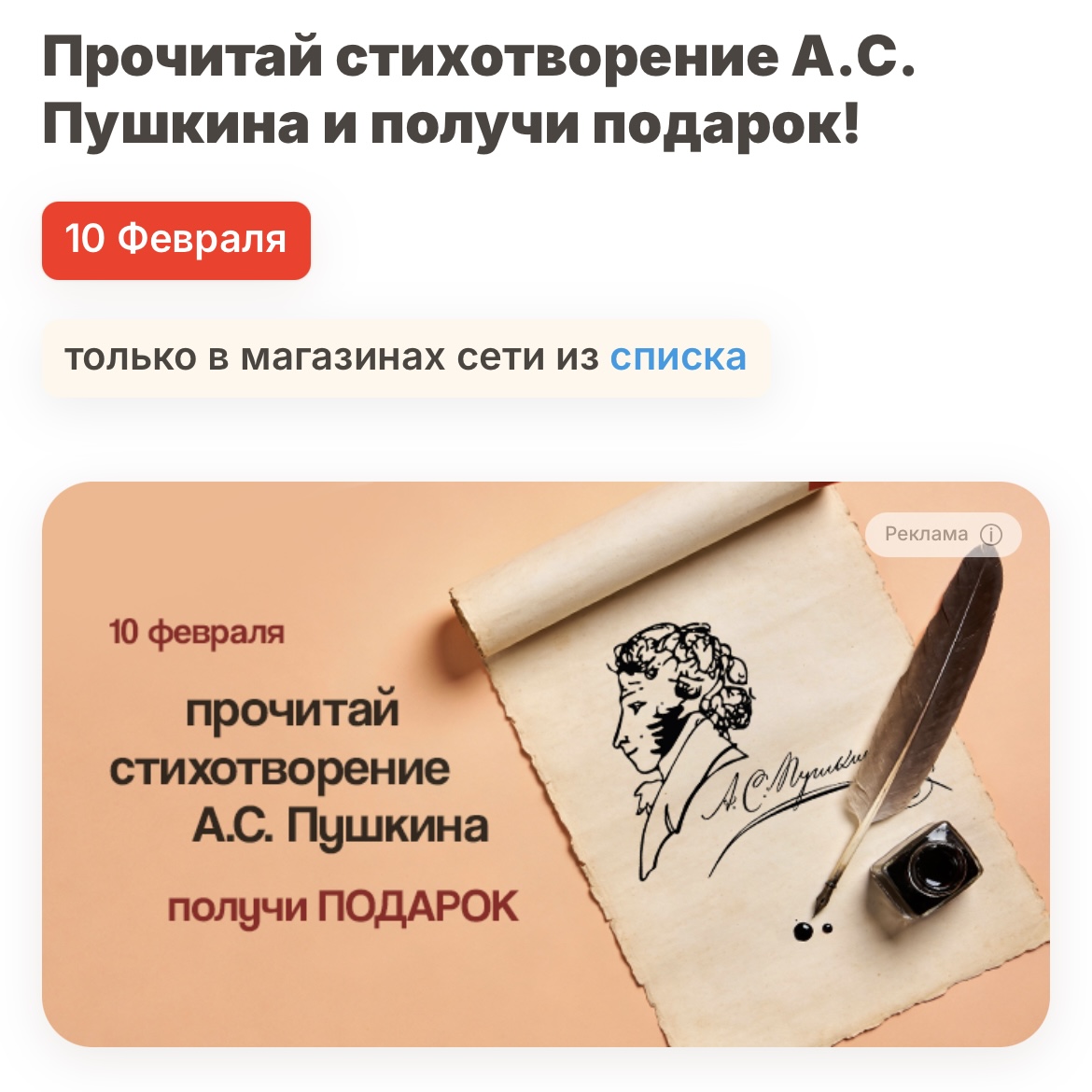 Акция только сегодня. Получить подарок можно в одном из магазинов из списка на сайте. Списка подарков нет, поэтому нужно уточнять у сотрудников.