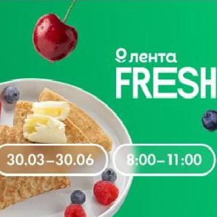 С 8:00 до 11:00 берите блины, сырники, запеканки и каши Лента FRESH. Скидка действует до 30.06.2026 при сумме покупки до 600₽.