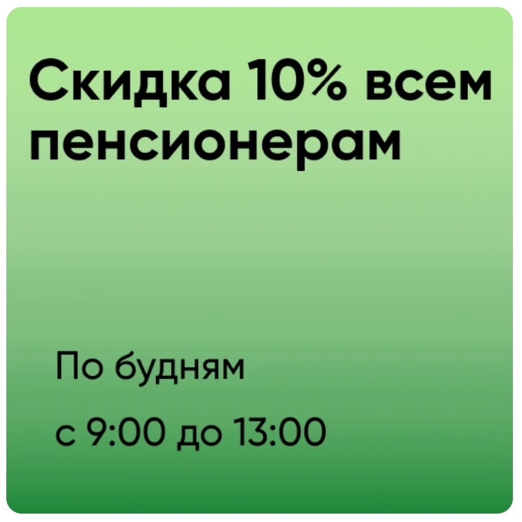 Скидка для пенсионеров предоставляется при предъявлении на кассе пенсионного удостоверения или справки, подтверждающей статус.