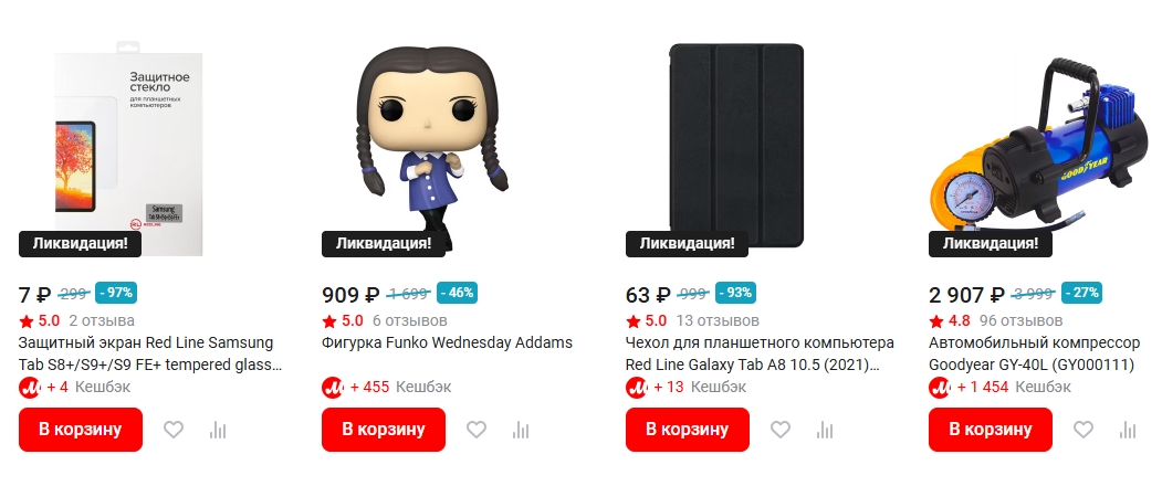 В М.Видео действует каталог «Ликвидация» со скидками до 90% на товары из разных категорий. Ассортимент ограничен, количество позиций быстро уменьшается.