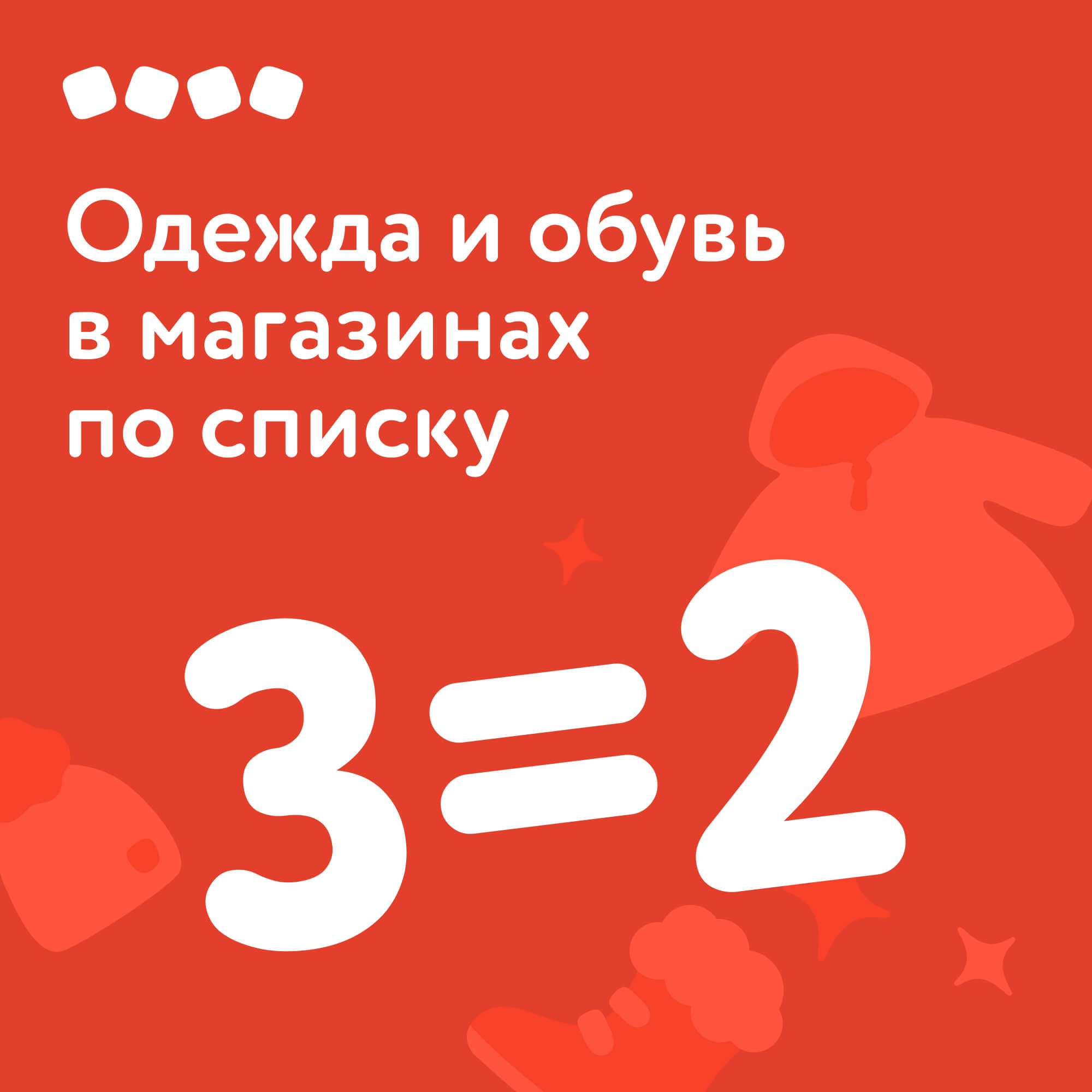 Участвует весь ассортимент одежды и обуви, кроме носков, колготок, гольфов. Покупку надо делать в розничном магазине именно из списка до 1 февраля.