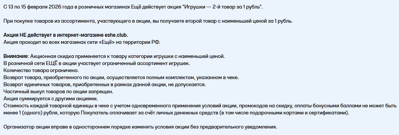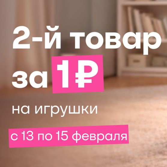 При покупке 2 игрушек вторая с наименьшей ценой будет за 1 рубль. Звучит неплохо, надеюсь там стОящие игрушки, а не всякие мякалки-шмякалки.