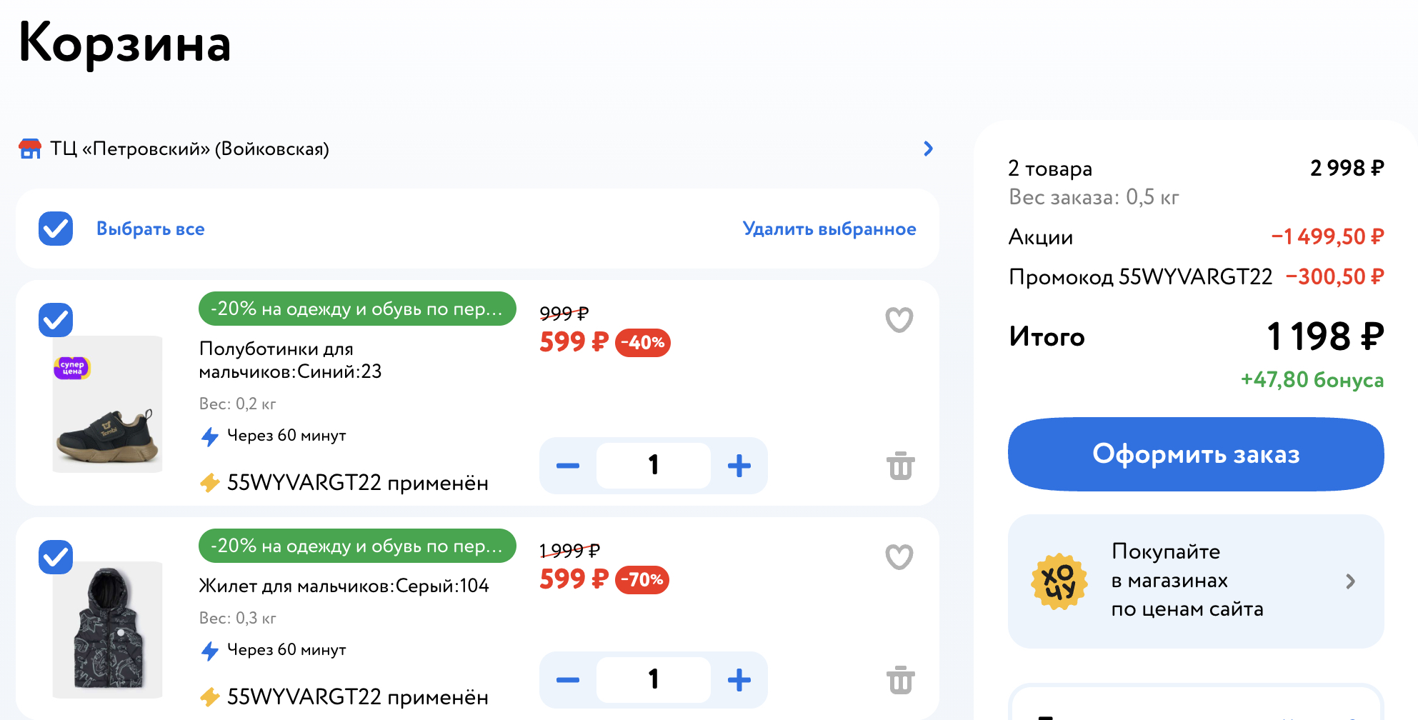 Лучше брать товары близкие по цене - так выгоднее) Еще у меня личный промокод был на скидку 20%. Смотрите какая выгода