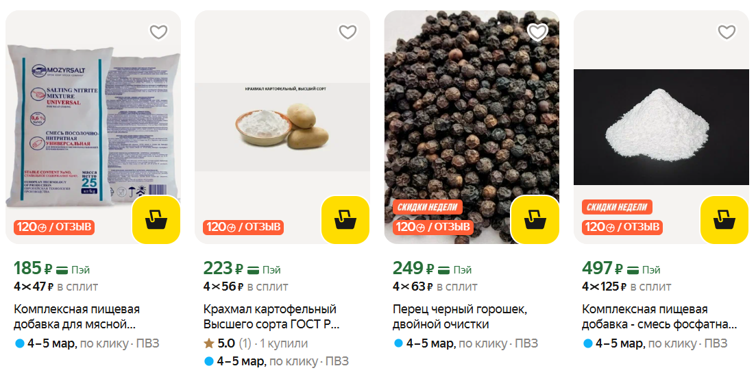 С учётом баллов цены хорошие. Например, соль нитритная 1 кг за 185 р и 120 баллов яндекс плюса. Баллы потом спишешь в корзине при след.покупке. Каталог на прода - https://go.hl.ru/1FfEP