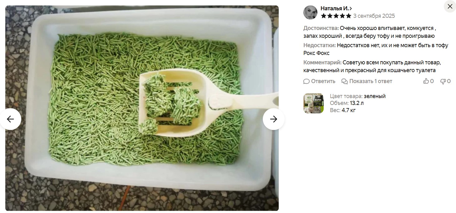 Если ищешь хороший наполнитель для кошачьего туалета, сейчас можно взять тофу-наполнитель RoxFox по скидке - 13,2 л всего за 891₽.