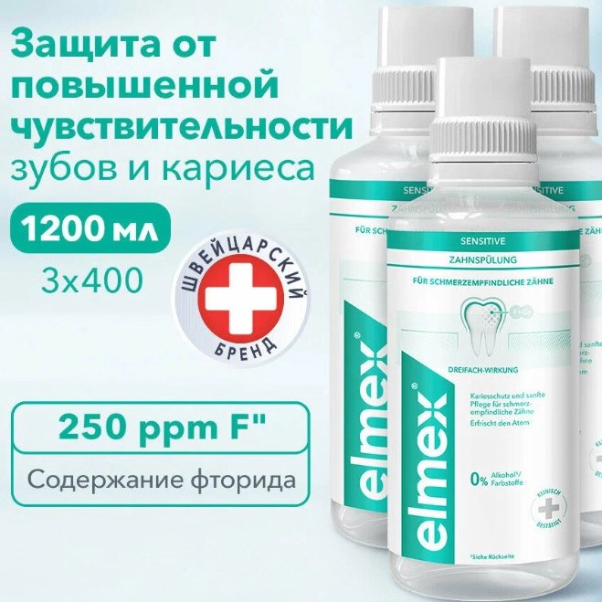 Три бутылки по 400 мл. Формула с Neo-Aminex помогает укреплять эмаль и добирается до мест, куда щётка не всегда попадает. Особенно удобно, если есть брекеты, коронки или протезы.