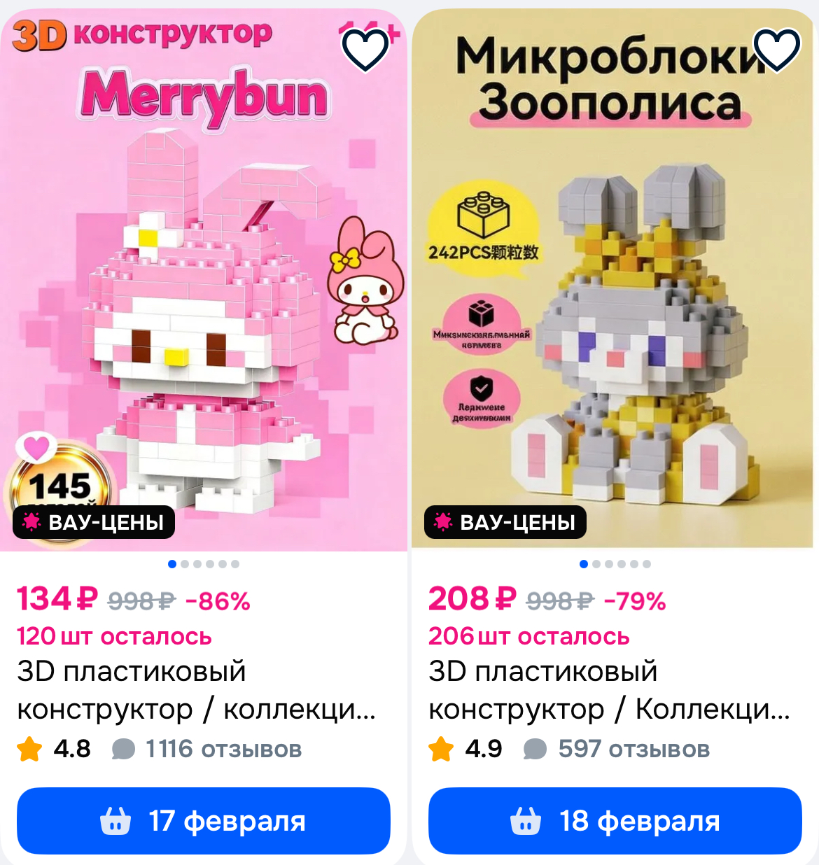 Попались конструкторы по низким ценам. Доставка быстрая!