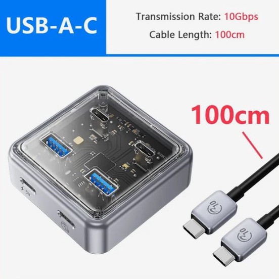 Это хаб с поддержкой скорости до 10 Гбит/с, подходит для флешек, внешних SSD, клавиатуры, мыши и прочих устройств. Можно подключить сразу несколько гаджетов и не переключать их вручную.