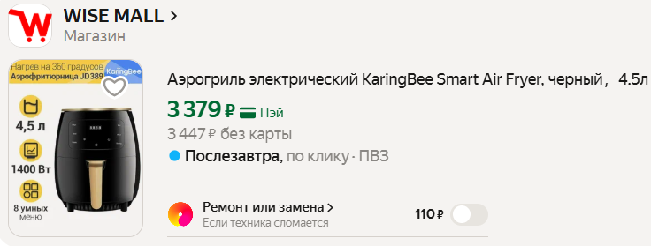 Цена - подарок! Мощность 1400 Вт, электронное управление с предустановленными программами. Можно готовить картошку фри, курицу, рыбу или овощи, с использованием минимального количества масла.