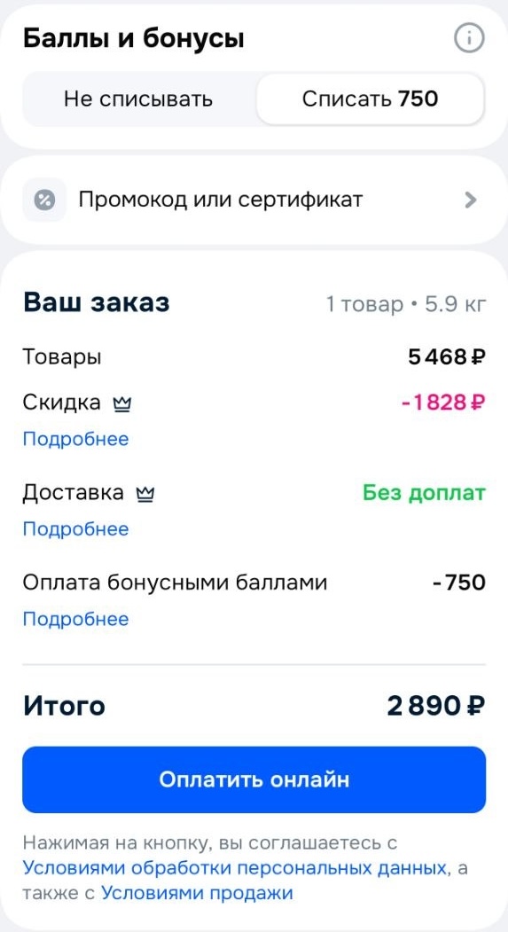 Если списать 750 бонусов продавца, то цена всего 2890₽!