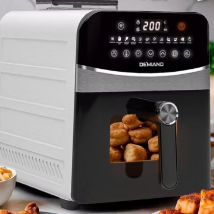 Управление сенсорное, дисплей, таймер, 12 автопрограмм. Есть Wi-Fi - можно следить за готовкой со смартфона через приложение. В приложении Demiand также доступны сотни рецептов от шеф-повара. В комплекте корзина для жарки, решётка, пароварка.