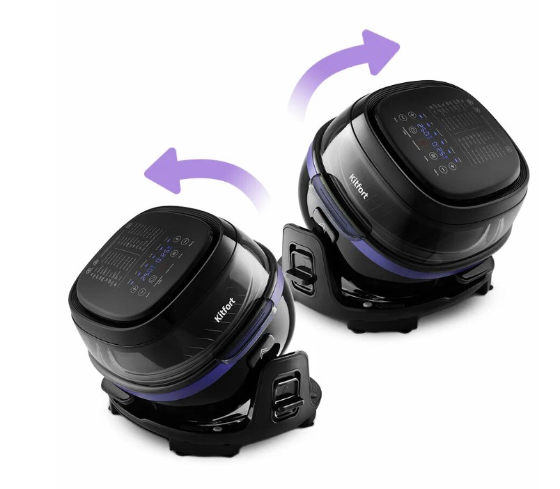 У него классная фишка: чаша наклоняется и сама перемешивает еду, так что ничего встряхивать не надо. Готовит на 1400 Вт, объём 5 литров . Температуру можно выставить от 40 до 250 C, есть 6 автоматических программ, таймер до часа и отложенный старт на 10 часов . И само собой, он жарит без масла, для ПП и вообще имба.
