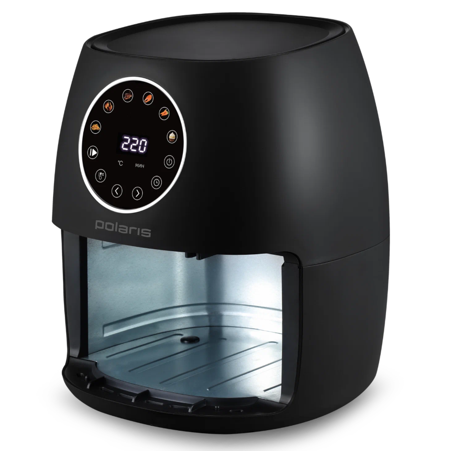 Компактная модель 3 в 1: фритюрница, гриль и духовка. Продувает продукты горячим воздухом - блюда получаются хрустящими снаружи и сочными внутри. Управление через цветной сенсорный дисплей: 6 автоматических программ (картофель, курица, стейк, рыба, овощи, пирог) и возможность ручной настройки температуры и времени. Чаша на 3,7 л с антипригарным покрытием, моется в посудомойке. В комплекте две решётки.