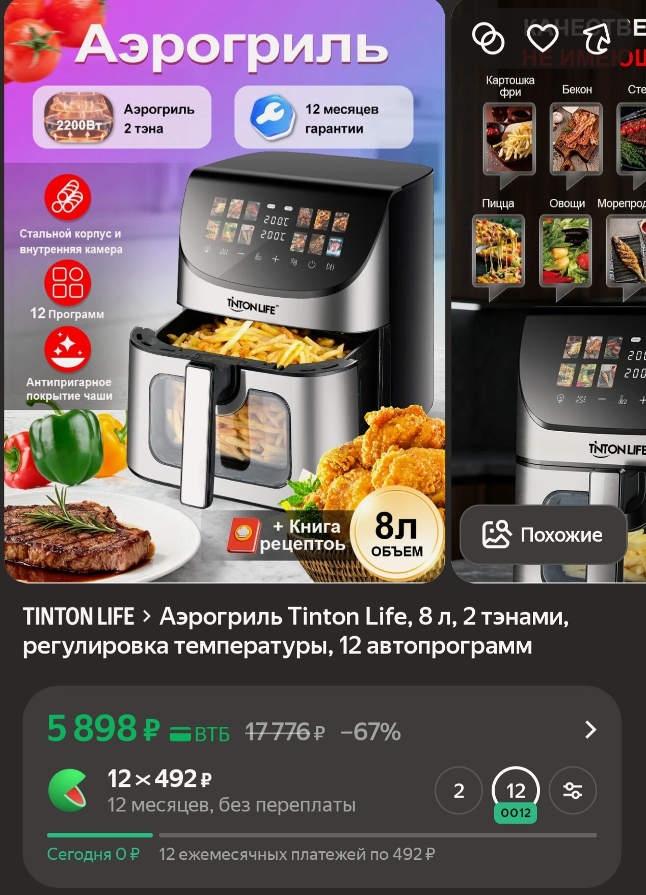 Что меня лично подкупило - это вайфай и управление со смартфона. Можно тупо свалить на диван, а он сам всё дожарит, плюс там больше 300 готовых режимов. Глаза разбегаются! Ну и мощность 1500 Вт - греет быстро, корочки получаются огонь.