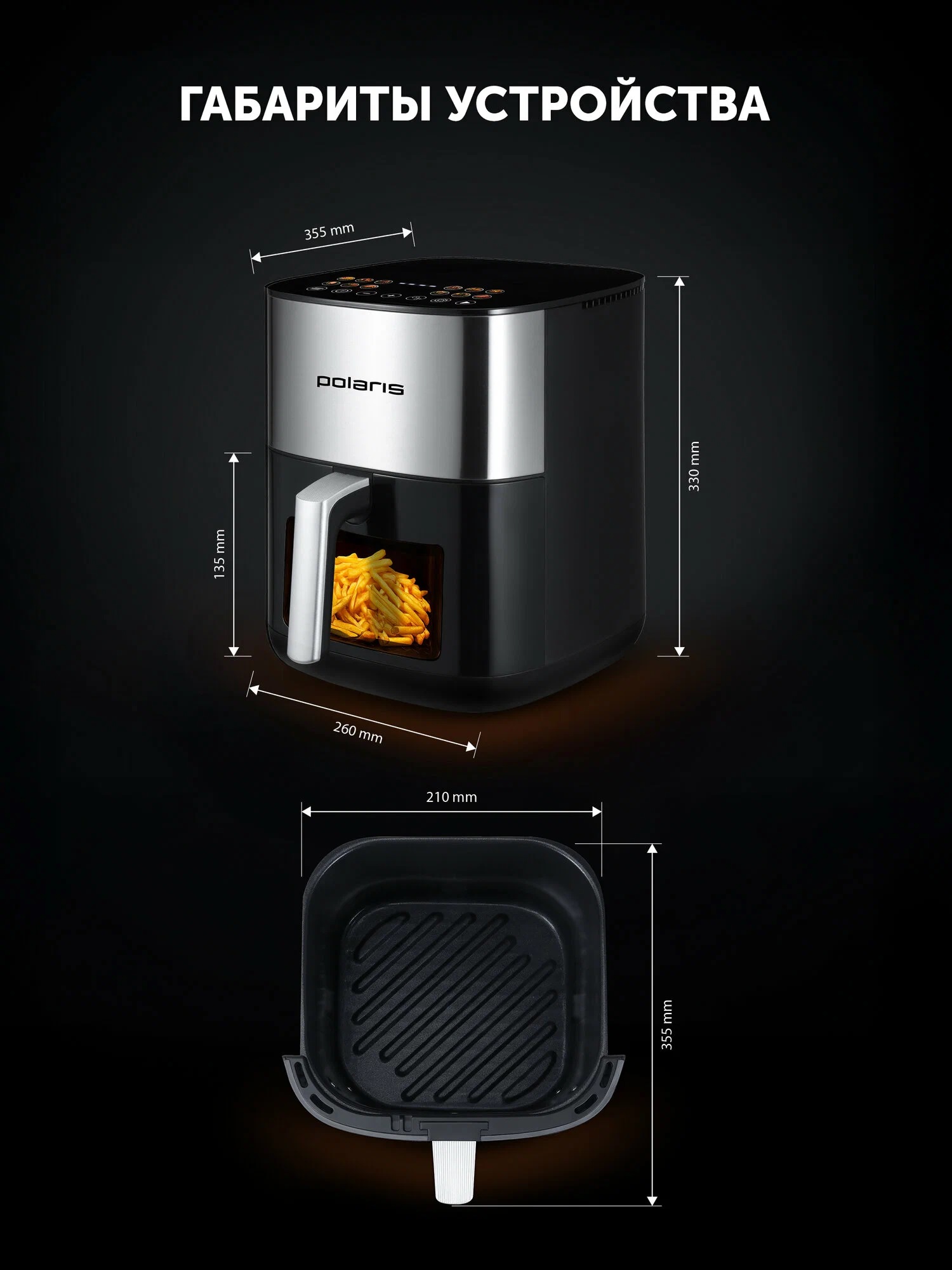 Совмещает в себе функции духовки, фритюрницы, гриля. 2 тэна, нагрев быстрый и равномерный, большая чаша на 6 л с антипригарным покрытием. Есть 12 автоматических программ приготовления, управление сенсорное.