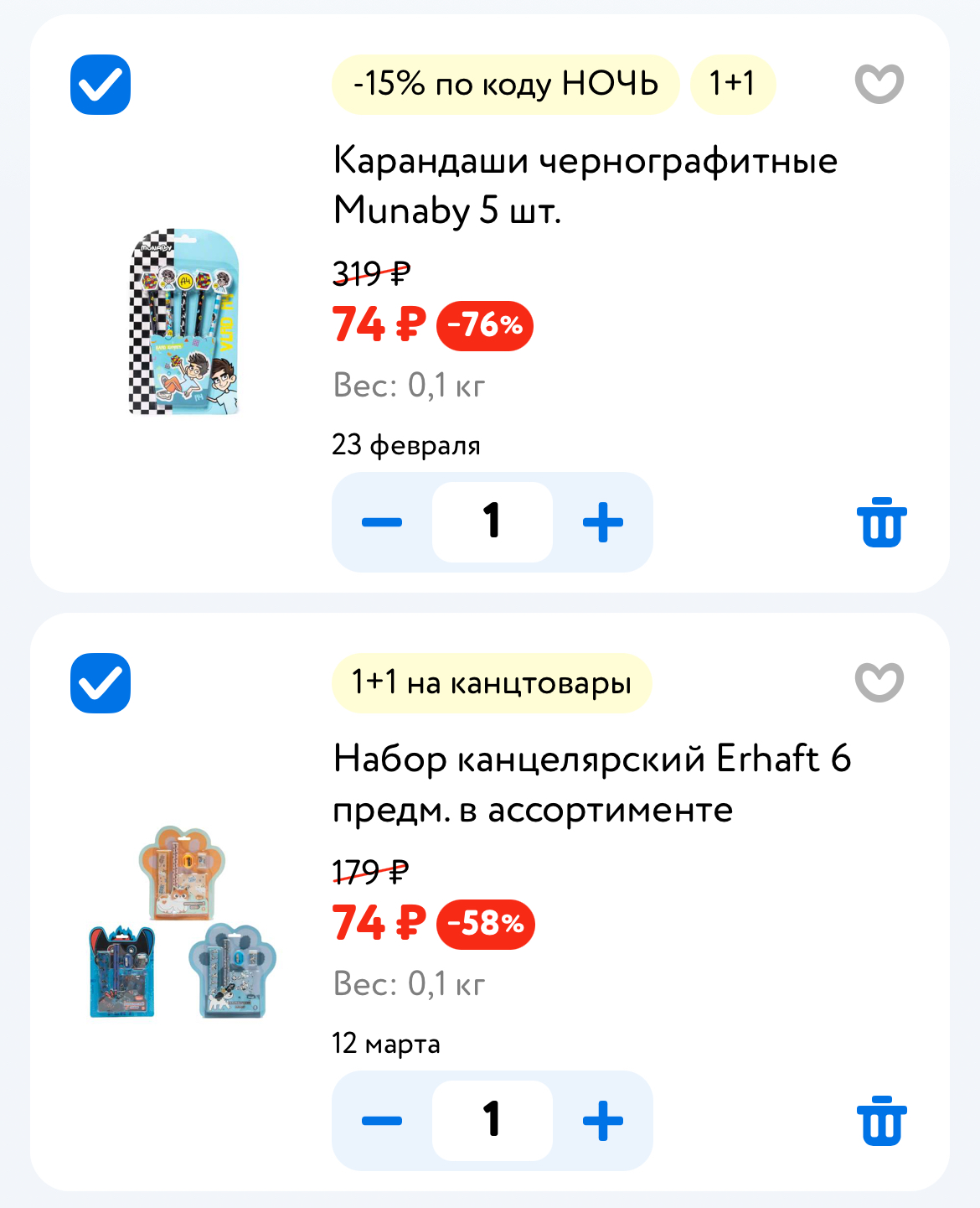 Оформляйте разными заказами по 2 товара для максимальной выгоды.