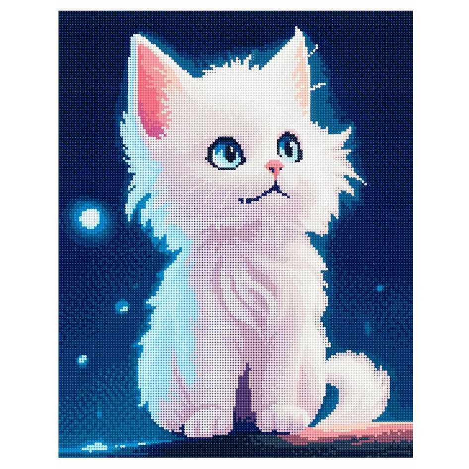 В наборе всё необходимое: стилус, лоток, пинцет, сухой клей, крепление для стены, зип-пакеты для хранения страз. Размер готовой картины 40х50 см.