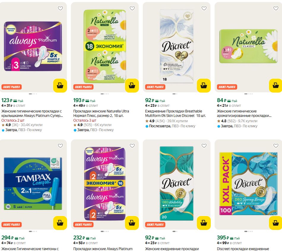 Нашла средства для женской гигиены Always, Naturella, Discreet, Tampax по выгодным ценам на Яндекс Маркет. Затариваемся, дамы)