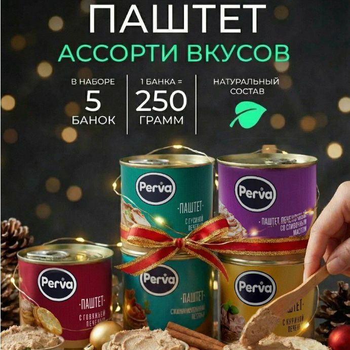 Ассорти набор паштетов Perva 250 гр ( масло, гусь, индейка, курица, говядина ) - 5 шт