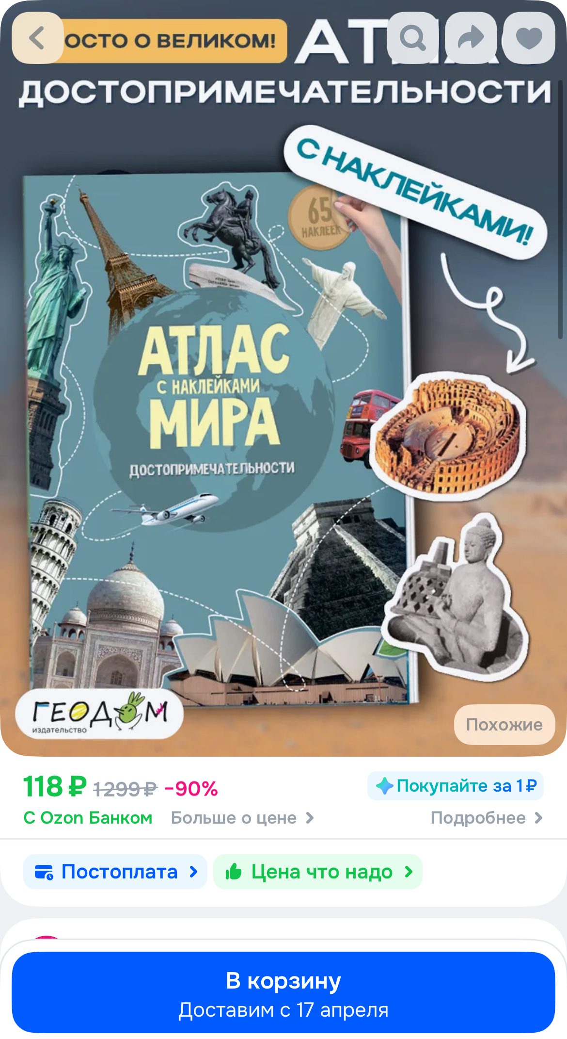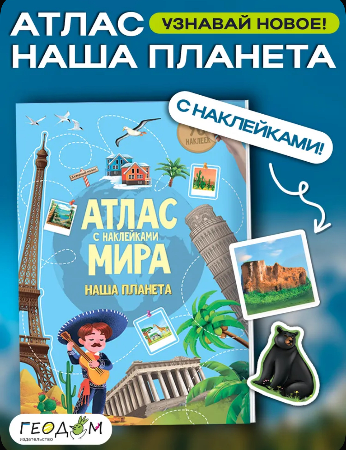 Ещё есть такой вариант за 123₽: https://www.ozon.ru/product/atlas-s-nakleykami-atlas-mira-dlya-detey-325795176/