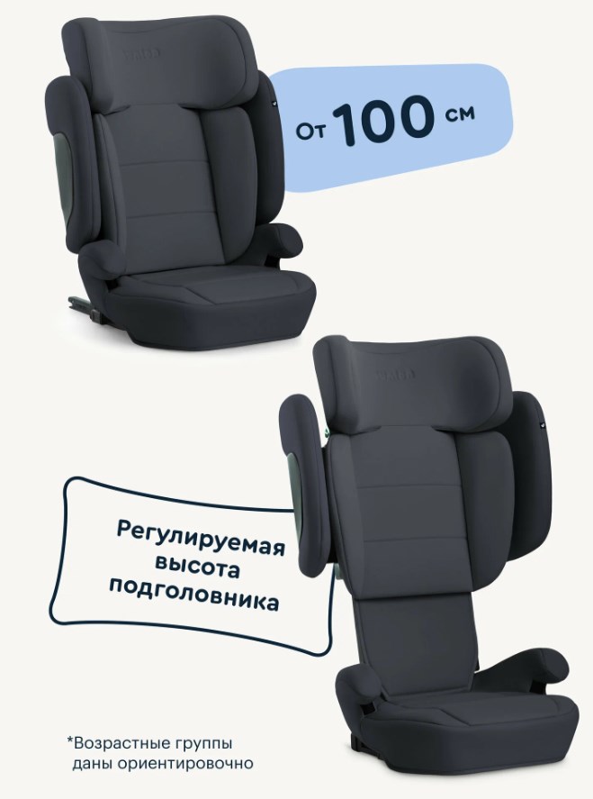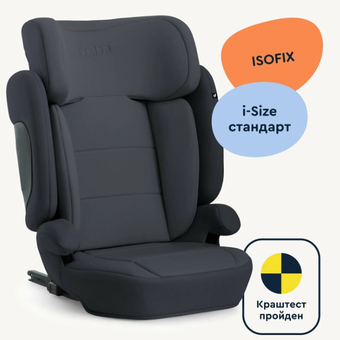 Подходит для детей ростом от 100 до 150 см, то есть примерно с 4-5 лет и до того момента, когда кресло уже не нужно. Соответствует современному стандарту i-Size (ECE R129), это один из самых строгих стандартов безопасности. Боковые крылья прочные, дополнительно защищают при боковом ударе.