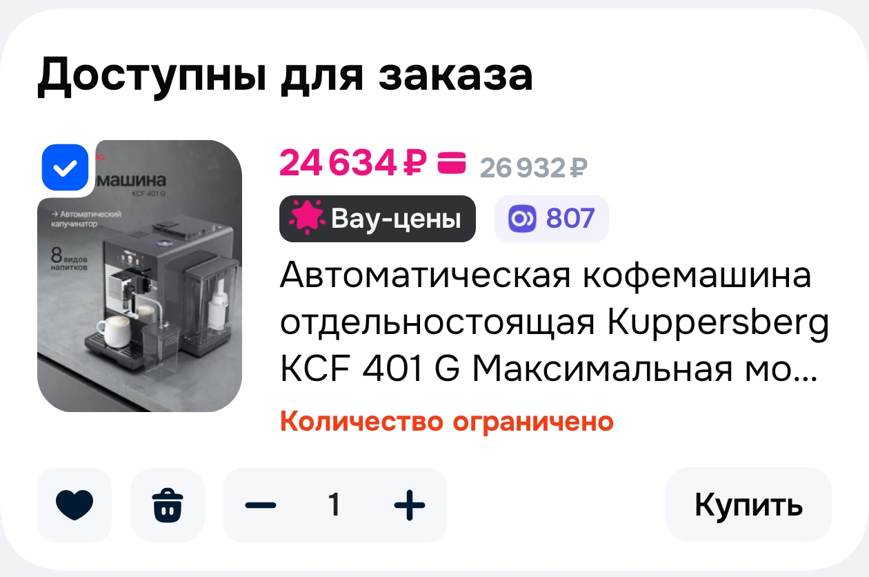 Цена может отличаться от региона. Например, в городе, где живут родители, кофемашина за 30к, но это тоже шикарный ценник, когда в М.Видео она же стоит 80к. Я в шоке.