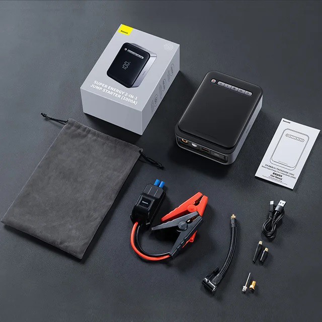 Встроенный аккумулятор на 8000 мАч, пиковый ток 1000А достаточно для запуска большинства автомобилей. Максимальное давление компрессора 150 PSI (около 10.3 бар), набирает давление до указанного автоматически. Есть цифровой дисплей, фонарь для работы в темноте, можно использовать как повербанк для зарядки телефонов.