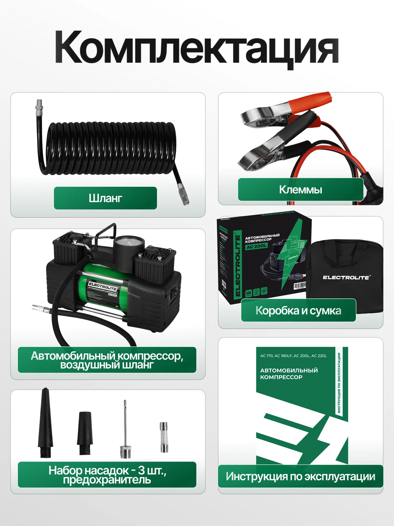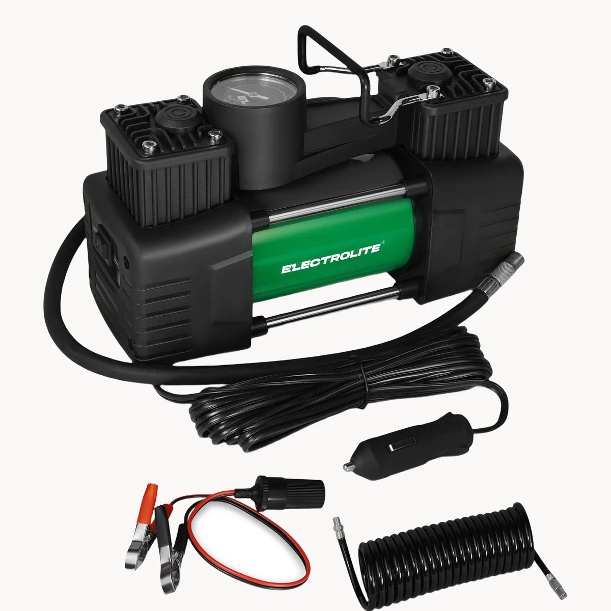 Хороший компрессор должен быть в каждом автомобиле. Можно подключить к прикуривателю или к аккумулятору, производительность 70 л/мин, максимальное давление 10.2 атм. Длинные кабели питания и шланг, есть манометр.